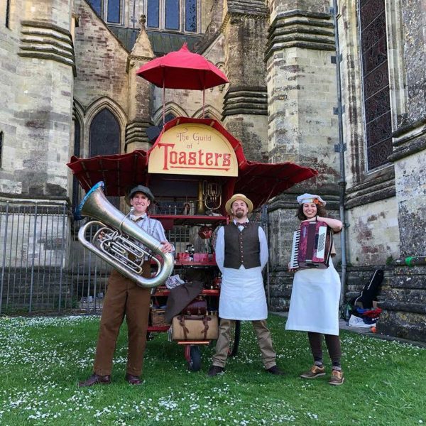 Pif-Paf invite to to join them on a beautiful big hearted journey through food, dance, live music, songs and tales from around the world. Join the Guild of Toasters and dance with their cart through the seasons as you toast your own lives with Batter Based treats from around the world in a love song to community.