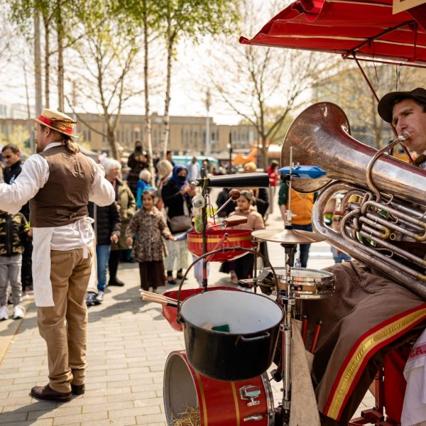 TOAST was built from meeting musicians, cooks, dancers and story tellers from around the world who, like Pif-Paf, have made Sheffield their home town. They’ve stitched all these treats together into a show that moves around a space as we travel with their beautiful mobile Toast Kitchen full circle around the wheel of seasons and celebrate each other in intimate sharing of food, wild dancing, and lashings of live music.